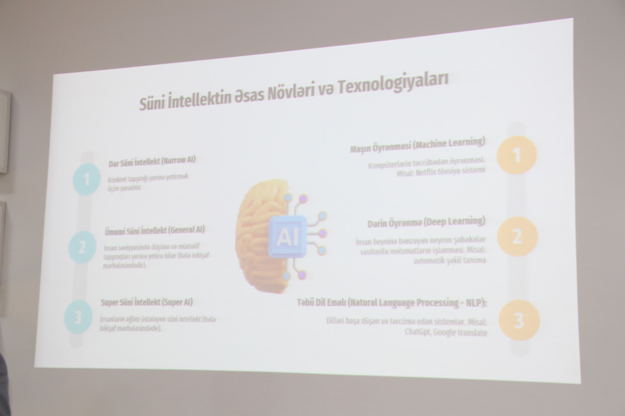 Təlim çərçivəsində slaydlar vasitəsilə süni intellektin təhsil sahəsində tətbiq imkanları ətraflı izah olunub. İnteraktiv şəkildə təşkil olunmuş təlimdə iştirakçılar mövzu ilə bağlı öz suallarını ünvanlayıb, fikir mübadiləsi aparıblar. Təlim müəllimlər üçün faydalı və maarifləndirici olub.